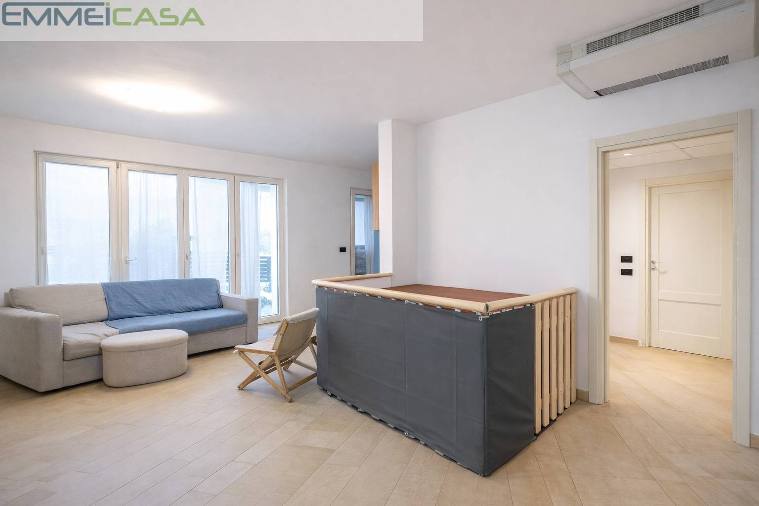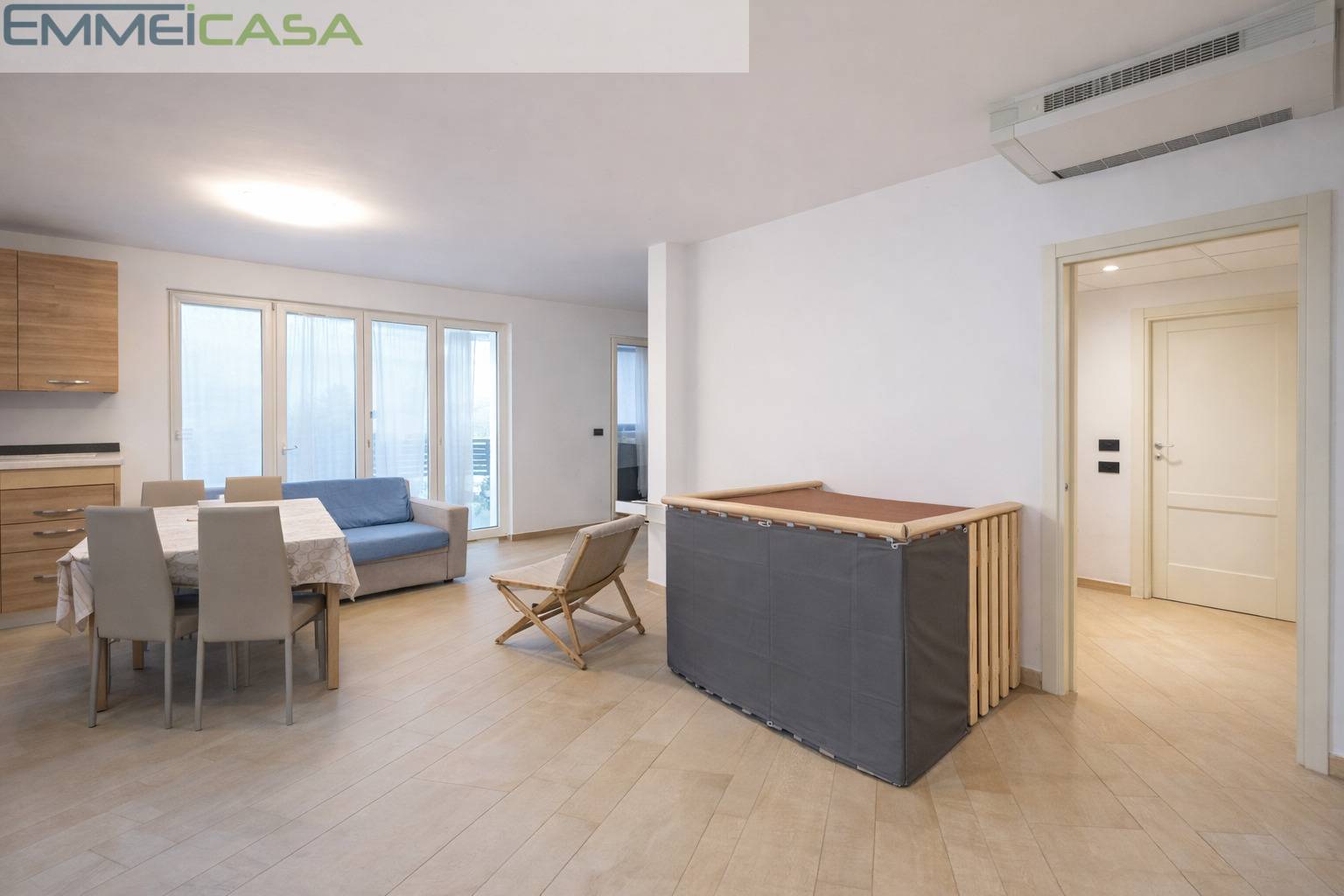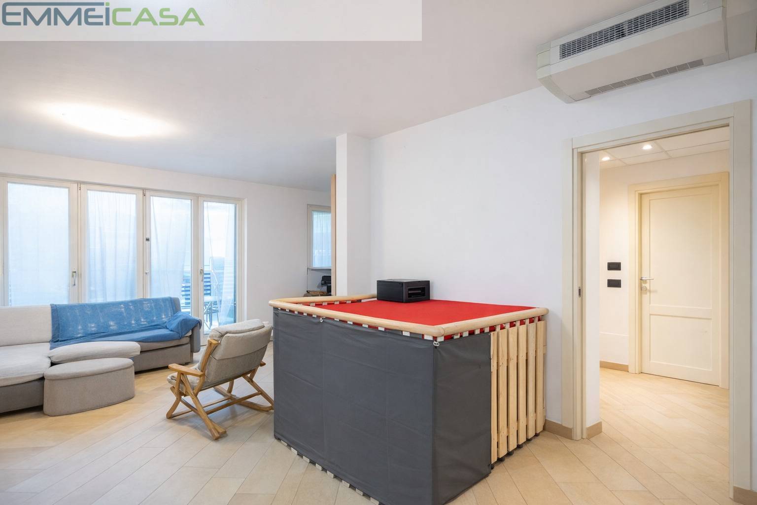 L’appartamento è dotato di riscaldamento e raffrescamento a pavimento, una tecnologia che assicura efficienza energetica e benessere abitativo durante tutto l’anno.