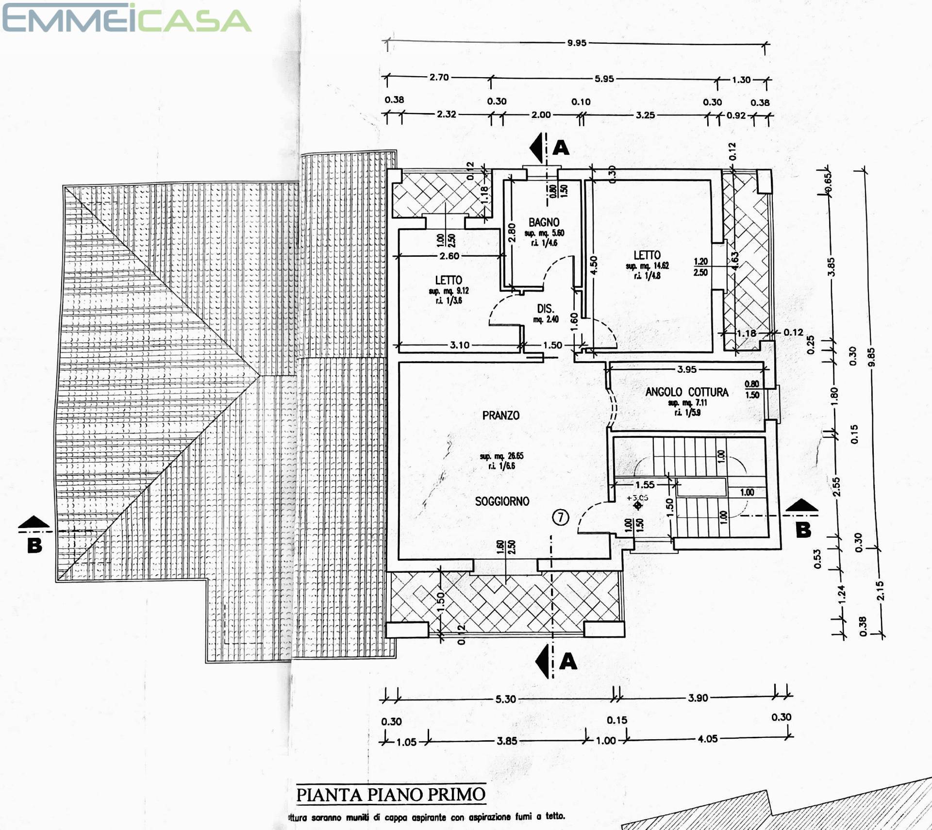 APPARTAMENTO 3 Primo Piano con MansardaSalendo al primo piano troviamo un appartamento molto luminoso, con soggiorno e angolo cottura, due camere da letto, bagno e balcone.